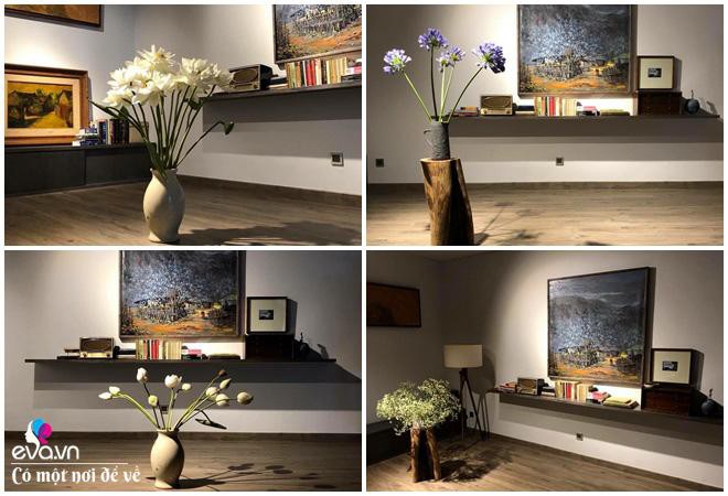 Chỉ cần những bình hoa nhỏ cũng làm thay đổi toàn bộ, khiến không gian nghệ thuật và mềm mại hơn.