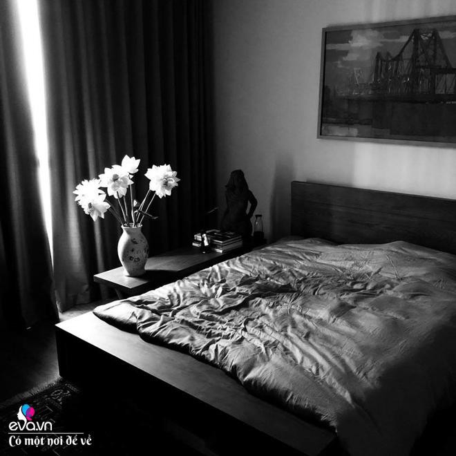 Còn phòng ngủ, phòng bếp và nhà vệ sinh, anh không chú trọng nhiều và được thiết kế vô cùng đơn giản. Với phòng ngủ chỉ đơn giản một chiếc giường, một kệ dài thẳng tưng để đèn sách và một tủ âm tường.